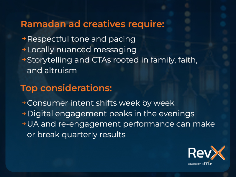 Ramadan is not a time for loud or generic promotions. Consideration for Respectful tone and pacing Vernacular or locally nuanced messaging Storytelling rooted in family, faith, and altruism